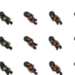 3 frames por direção (1 frame parado, 2 frames andando)