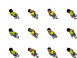 3 frames por direção (1 frame parado, 2 frames andando)